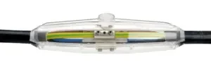 Boite de jonction à résine bi-composants à couler, elle permet de faire le raccordements de deux câbles électriques de manière parfaitement étanche.