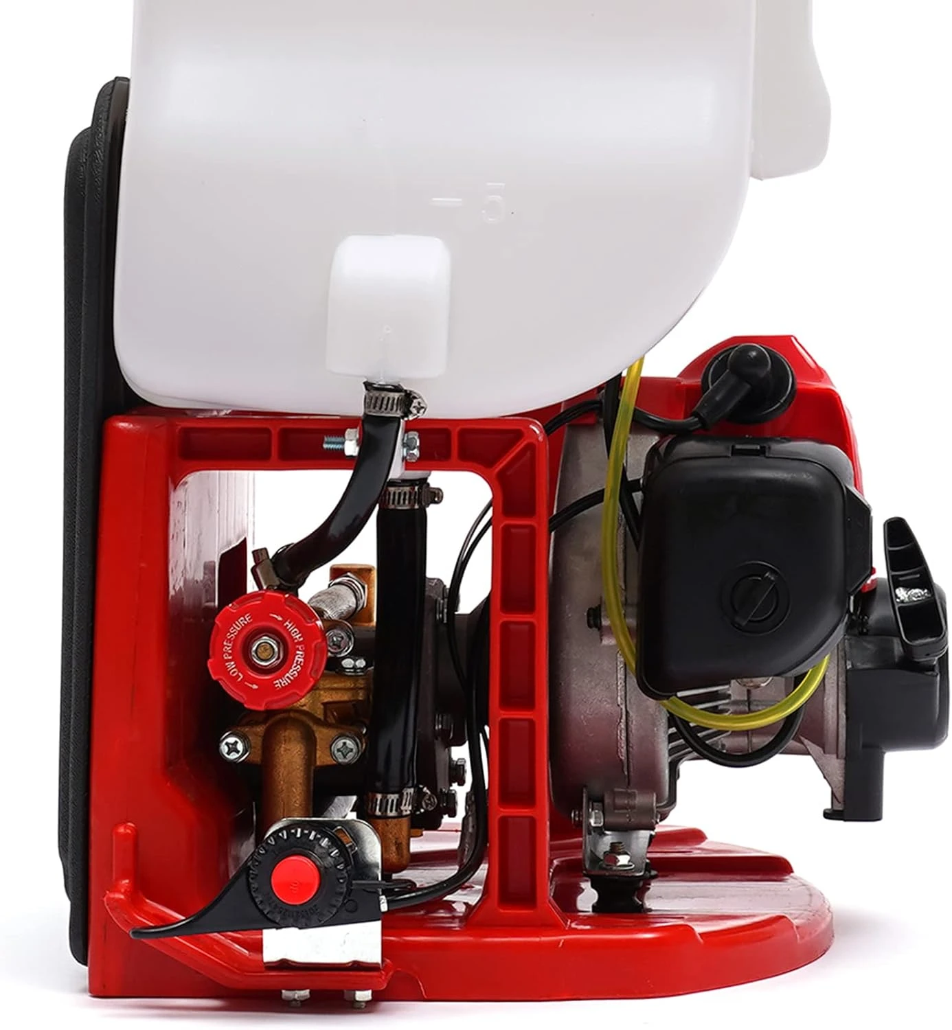 Poignée de l'accélérateur et bouton rouge : sous la valve de pression du pulvérisateur se trouve une poignée d'étranglement noire, et le bouton rouge est l'interrupteur de flamme. Il est pratique pour vous de distinguer précisément la machine et de l'allumer et de l'éteindre rapidement.